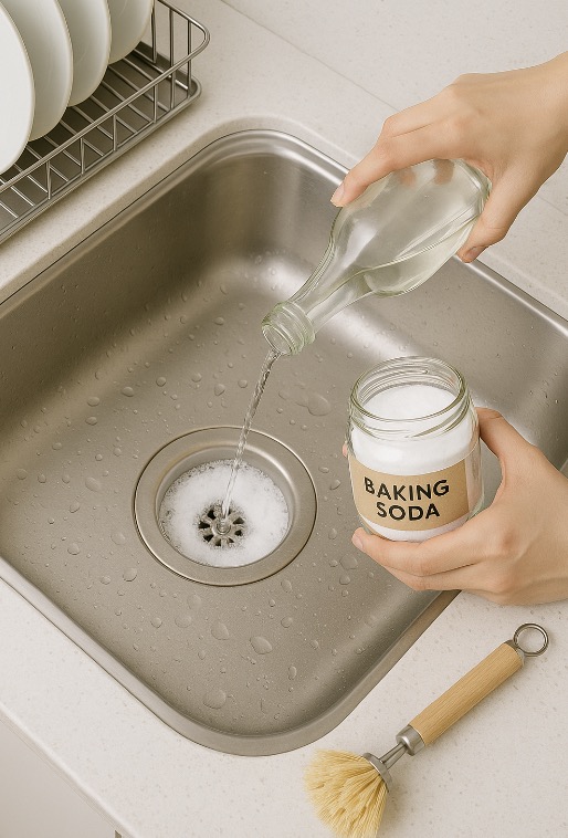 🧂 1️⃣ 베이킹소다 + 식초로 기본 청소